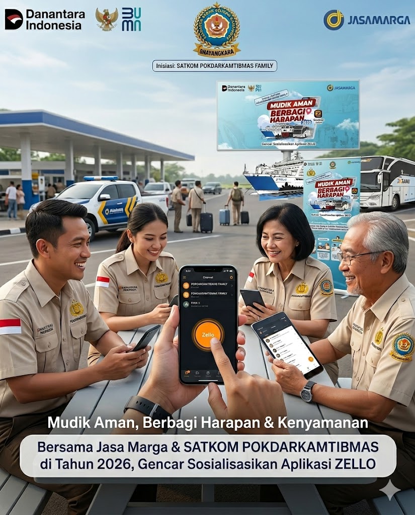 SATKOM pokdarkamtibmas bhayangkara “POKDARKAMTIBMAS FAMILY” di bawah pimpinan H IRMA MAULANA MP 01 PF, gencar mensosialisasikan aplikasi ZELLO kepada warga masyarakat menjelang arus mudik hari raya idul fitri 2026.dengan mengakses Aplikasi ZELLO WALKIE TALKIE sebagai server untuk memudahkan masyarakat mendapatkan informasi terkini seputar arus mudik, kondisi lalu lintas, cuaca, dan informasi penting lainnya.