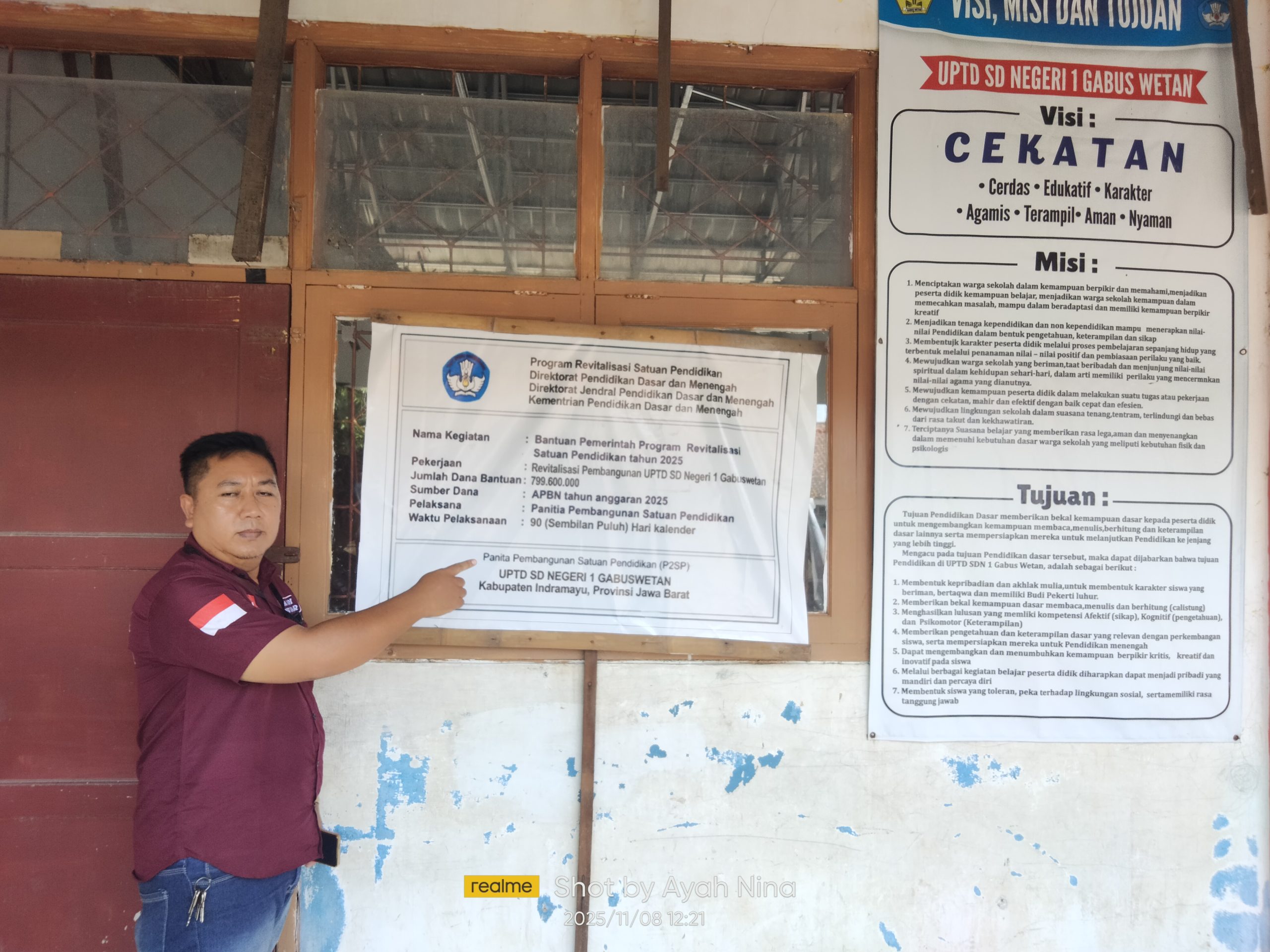 Faktanews24.com – Indramayu – Proyek Revitalisasi Satuan Pendidikan Tahun 2025 di SD Negeri 1 Gabuswetan, Kecamatan Gabuswetan, Kabupaten Indramayu, Jawa Barat, menuai sorotan publik. Pekerjaan yang bersumber dari Anggaran Pendapatan dan Belanja Negara (APBN) Tahun Anggaran 2025 senilai Rp799.600.000 tersebut diduga tidak sesuai spesifikasi teknis sebagaimana mestinya.