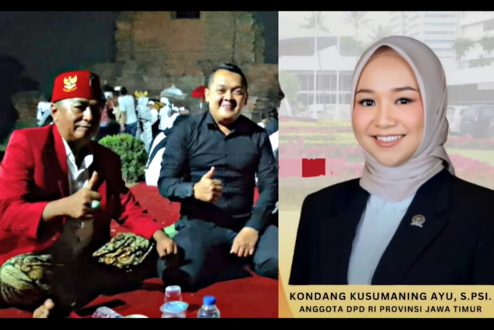 MOJOKERTO.Faktanews24 -Tampak foto kolase, Edi Welliang dan Kondang Kusumaning Ayu S.PSi anggota DPD RI 2024 – 2029. Foto kolase lainnya, Edi Welliang – Norman Handito Kepala Dinas Kebudayaan, Pemuda, Olahraga dan Pariwisata (Kadisbudporapar) Kabupaten Mojokerto dan Kondang Kusumaning Ayu.