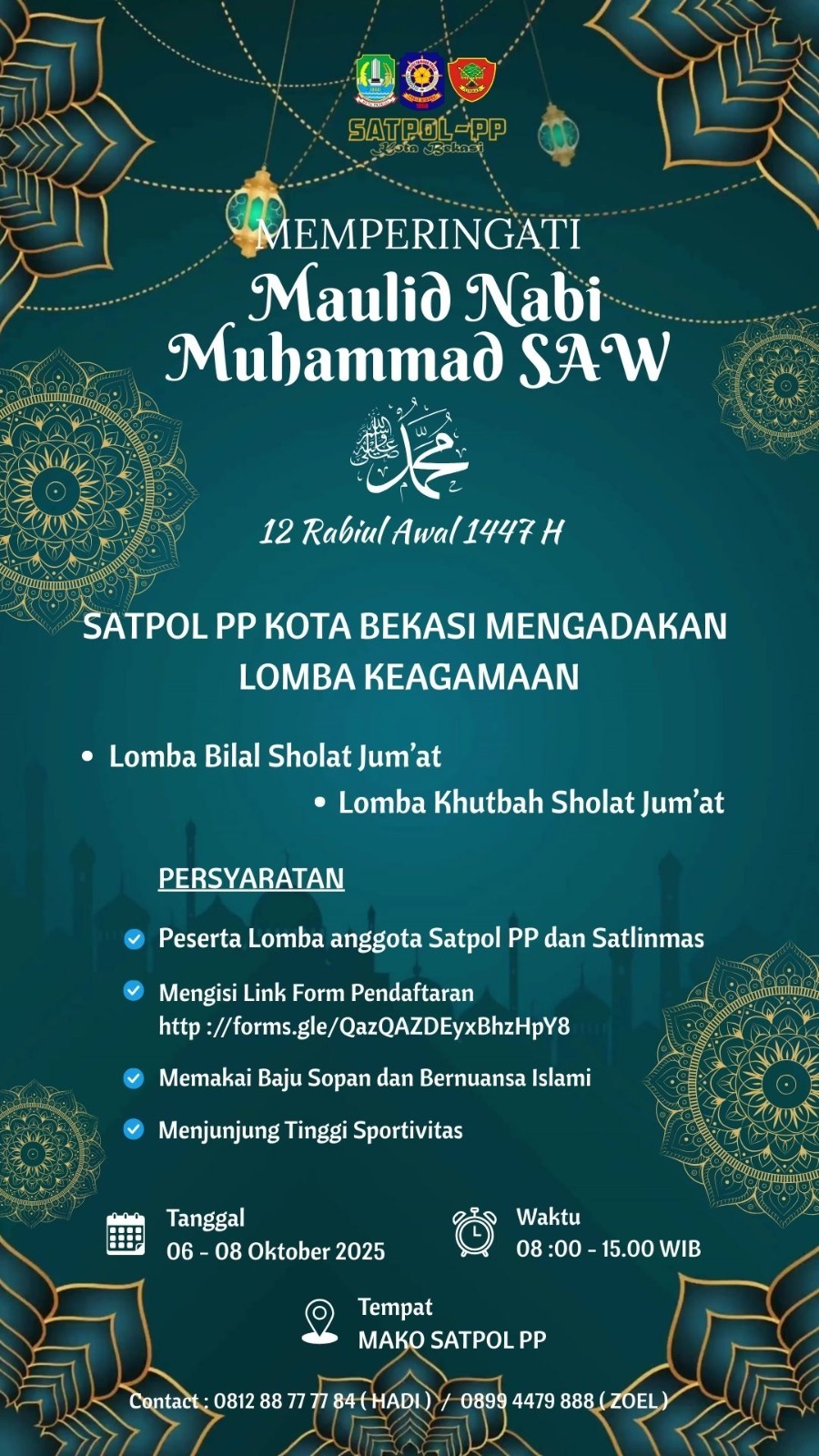 Faktanews24.com | Kota Bekasi.Pentingnya penguatan fisik bagi aparat penegak ketertiban seperti Satpol PP dan Satlinmas memang tidak dapat dipungkiri. Namun, dalam rangka meningkatkan kualitas sumber daya manusia secara menyeluruh, Pemerintah Kota Bekasi memberikan perhatian lebih dengan menambahkan aspek penguatan spiritual bagi anggotanya. Salah satu wujud nyata dari penguatan ini adalah pelaksanaan lomba Bilal dan Khutbah Jumat yang diperuntukkan khusus bagi anggota Satpol PP dan Satlinmas se-Kota Bekasi. Kegiatan yang berlangsung pada tanggal 6 hingga 8 Oktober 2025 bertempat di Markas Komando Satpol PP Kota Bekasi ini diharapkan tidak hanya meningkatkan kemampuan keagamaan, tetapi juga menguatkan ikatan solidaritas dan semangat pengabdian anggota.