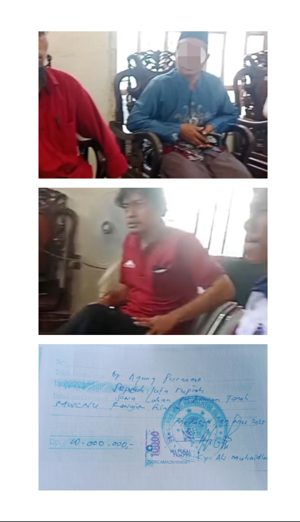 Tanah tersebut diketahui telah bersertifikat Hak Milik dengan nomor 02122 atas nama Rudi Hartono, menurut pengakuan Rudi Hartono tanah seluas 4178 M² itu telah diserobot oleh Ali Muhaidlori sejak sekitar Tiga tahun yang lalu dan bahkan telah disewakan kepada seseorang bernama Agung Purnomo selama dua tahun dengan nilai sebesar Rp 15.000.000 (lima belas juta rupiah), tanpa seizin pemilik yang sah.