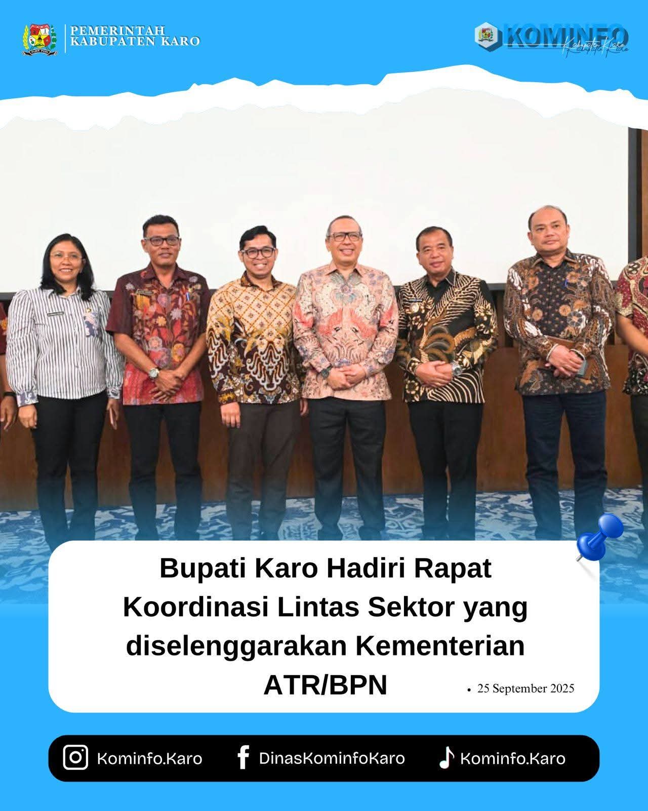Bupati Karo, Brigjen Pol (Purn) Dr. dr. Antonius Ginting, Sp.OG., M.Kes., menghadiri Rapat Koordinasi (Rakor) Lintas Sektor yang digelar oleh Direktorat Jenderal Tata Ruang, Kementerian Agraria dan Tata Ruang/Badan Pertanahan Nasional (ATR/BPN) pada Kamis (25/9) di Hotel Le Meridien, Jakarta. Rakor ini juga diikuti oleh berbagai kementerian/lembaga dan pemerintah daerah yang sedang menyusun dokumen RDTR.