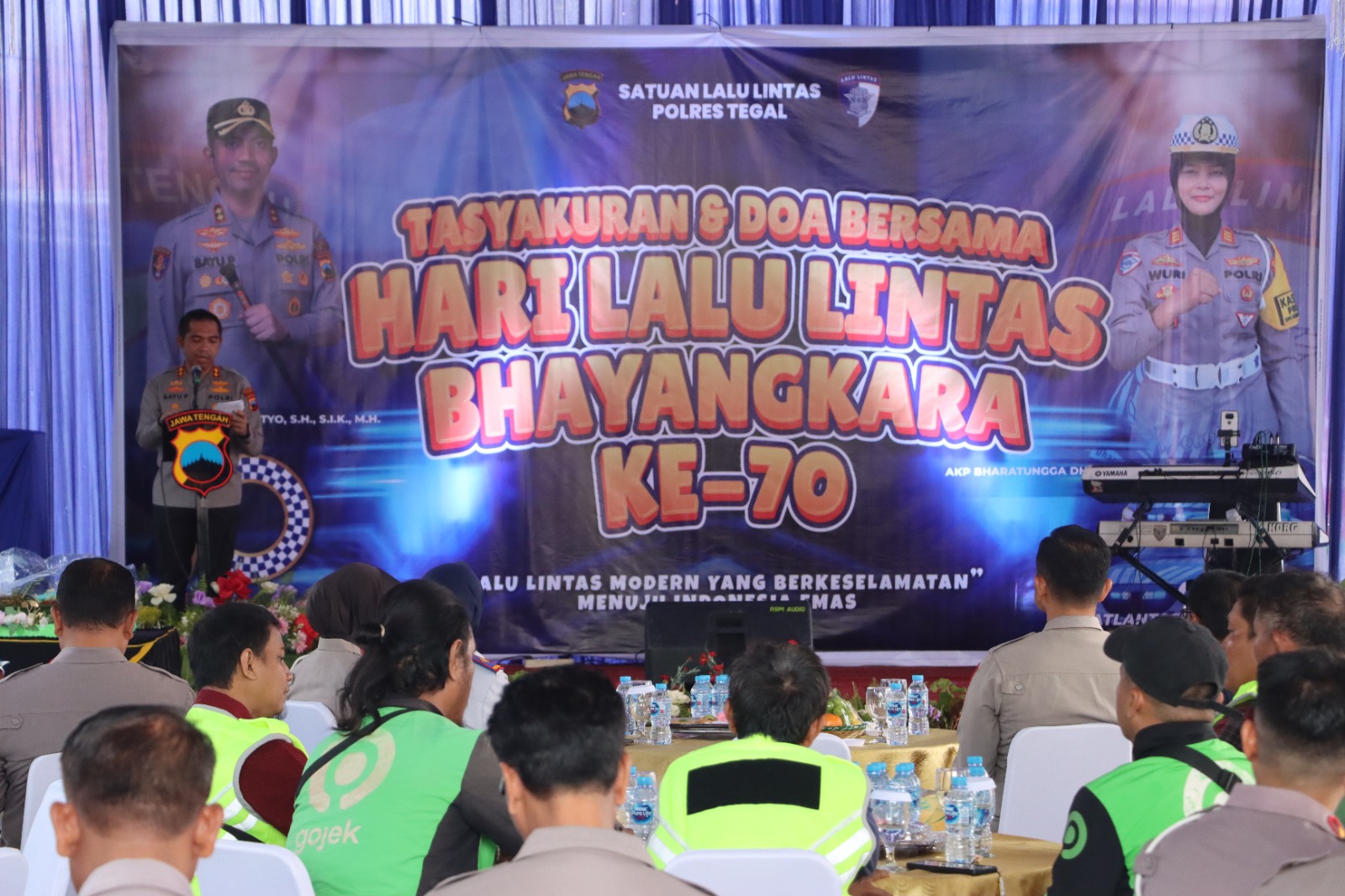 Dalam sambutannya, Kapolres Tegal menyampaikan ucapan selamat kepada seluruh personel lalu lintas Polri, khususnya Satlantas Polres Tegal, yang telah mendedikasikan tenaga dan pengabdiannya bagi masyarakat. Dengan mengusung tema “Lalu Lintas Modern yang Berkeselamatan Menuju Indonesia Emas”, Kapolres mengajak seluruh hadirin menjadikan peringatan ini bukan hanya sekadar seremonial, melainkan sebagai sarana refleksi dan evaluasi dalam melaksanakan tugas di bidang lalu lintas.